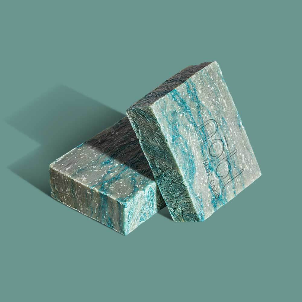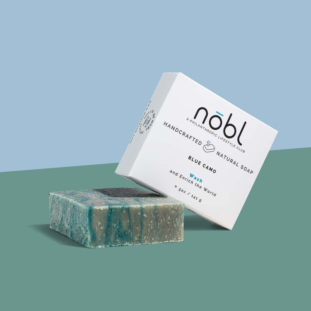 Blue Camo Peppermint Soap by Nōbl camouflages your pores and destroys even the strongest body odors, making you feel fresh and minty clean.