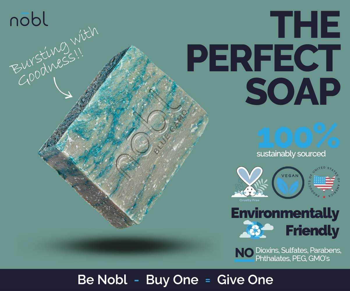 Add a few bars of Blue Camo Peppermint Soap by Nōbl. to your bag today, so you can enjoy the feeling of the most minty fresh skin!